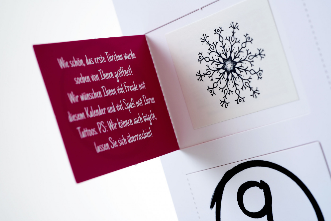 Der Tattoo-Kalender wurde als ungewöhnlicher Adventskalender konzipiert, als kreative Alternative zur klassischen Schokoladen-Variante. Heute ist daraus ein vielseitiges Werbemittel geworden, das weit über die Weihnachtszeit hinaus eingesetzt werden kann.